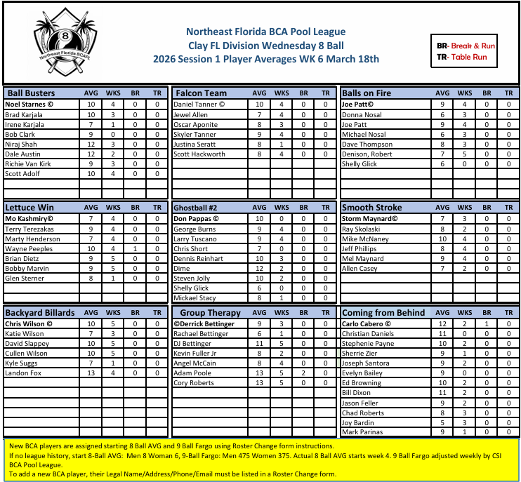 * NOTE: To see your schedule (without table assignments), individual scores, and more, click the corresponding button above then select your team/league from the top left dropdown at the FargoRate website.
