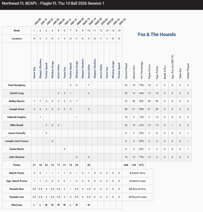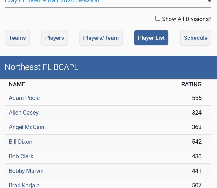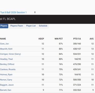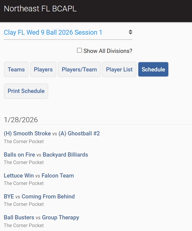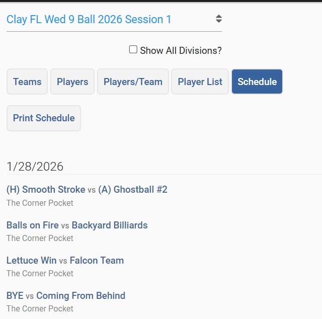 Do not pay a lot of attention to this tab. It will show you the name of the team you are playing but will not tell you where you are playing or what table you are playing on.